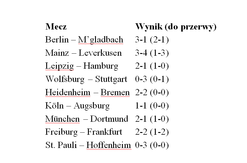 Tak się jednak nie stało i monachijczycy przed przerwą kolejnych bramek nie zdobyli, choć okazji ku temu mieli wiele. Faktem tym jednak fani Bayernu nie przejmowali się. Widząc sparaliżowanych strachem dortmundczyków, w spokoju czekali na drugą połowę i kolejne trafienia swoich ulubieńców.