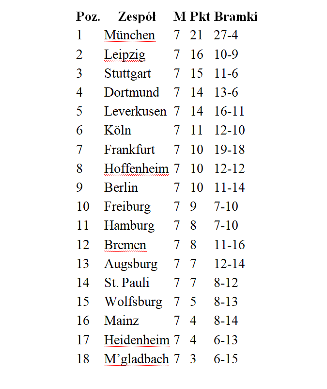 Choć za nami dopiero siedem z 34 kolejek bieżącego sezonu niemieckiej ekstraklasy, to już można zaryzykować twierdzenie, że po mistrzostwo 1. Bundesligi najprawdopodobniej sięgnie Bayern München. Duma Bawarii wygrała dotychczas wszystkie spotkania bieżącego sezonu 1. Bundesligi, a licząc do tego mecze w Lidze Mistrzów, Pucharze Niemiec i Superpucharze Niemiec, Bawarczycy zwyciężyli 11 potyczek z rzędu! Dzieje się tak pomimo tego, że z powodu kontuzji Bayern nie gra w najsilniejszym składzie, m.in. bez Musiali, Daviesa i Stanisicia.