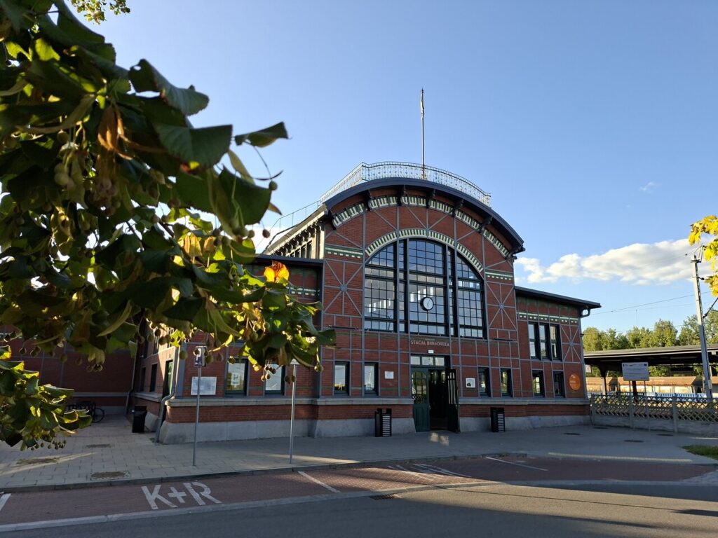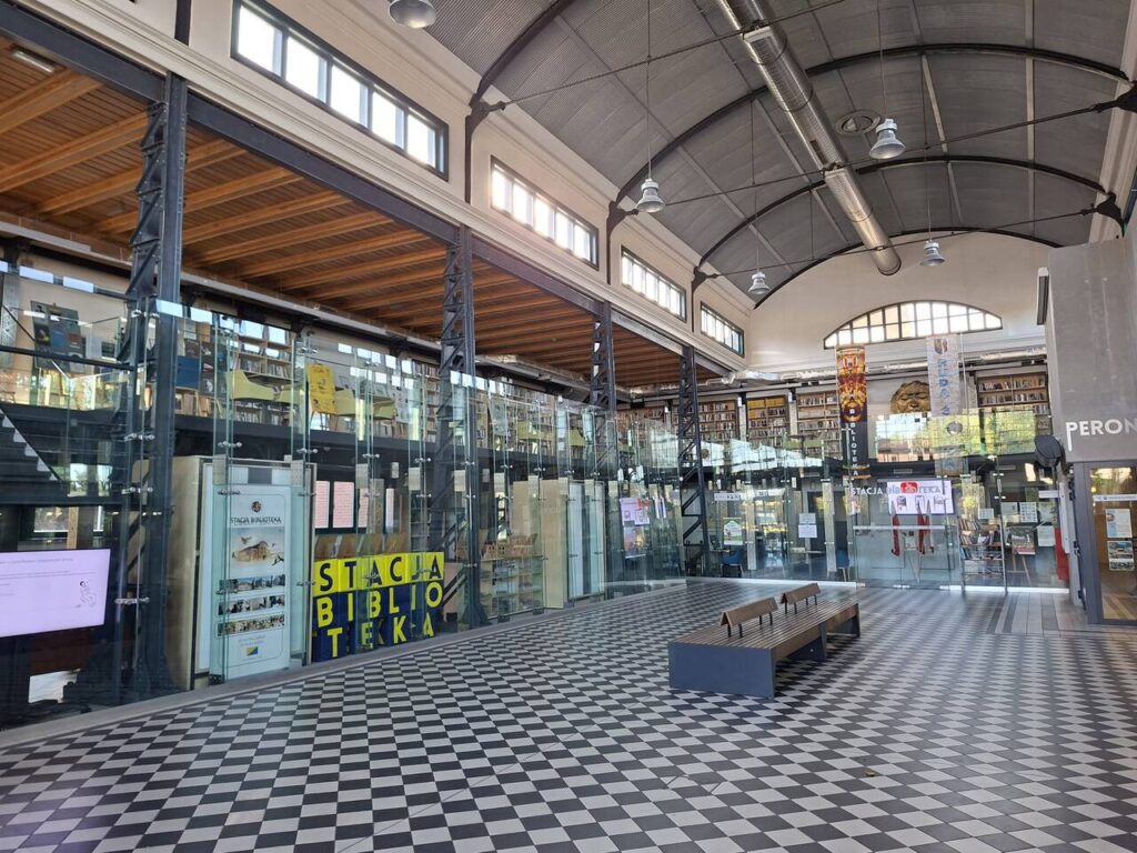 Sercem odnowionego dworca kolejowego jest biblioteka miejska. Nazwana „Stacją Biblioteka”, znalazła nowy dom w przeszklonej galerii nad poczekalnią. Oprócz licznych regałów z książkami znajduje się tam również czytelnia. Czytelnicy i podróżni mogą też skorzystać z kawiarni, która nosi dawną niemiecką nazwę dzielnicy: Morgenroth. Dziś „Stacja Biblioteka” to znacznie więcej niż tradycyjna biblioteka. W odnowionych pomieszczeniach odbywają się różnorodne wydarzenia kulturalne, w tym wieczory autorskie, koncerty i pokazy mody.