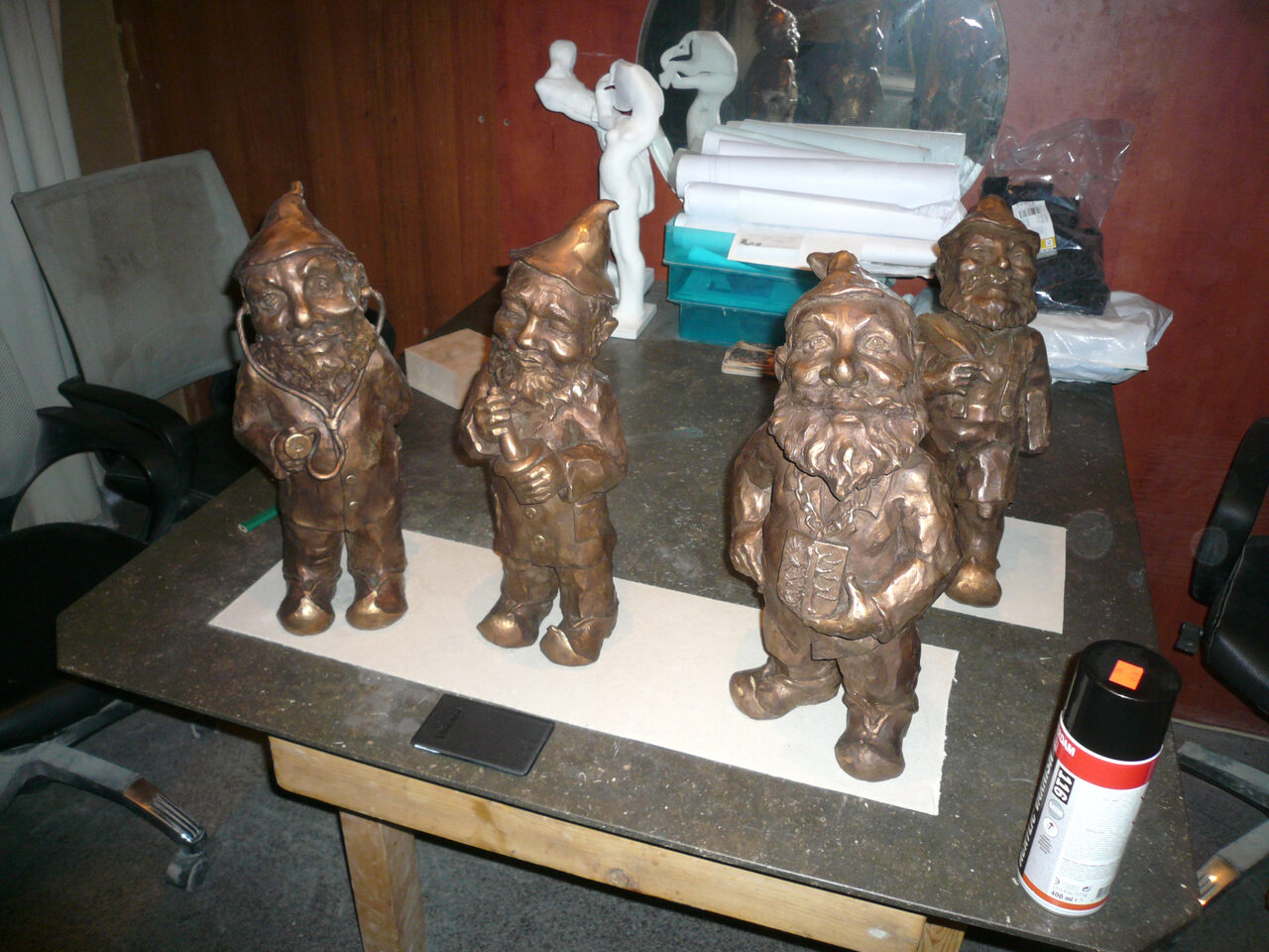 Luher Zwerge stehen abholbereit in der Werkstatt des Bildhauers in Breslau-Brochów