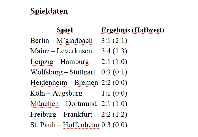 Tabelle