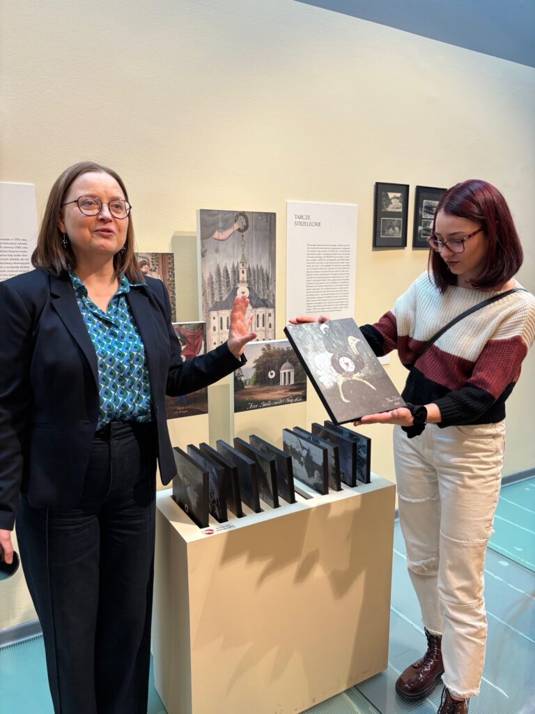 Iwona Solisz, Leiterin des Museums des Oppelner Schlesiens führt durch die Ausstellung über die Würtemberger in Carlsruhe.