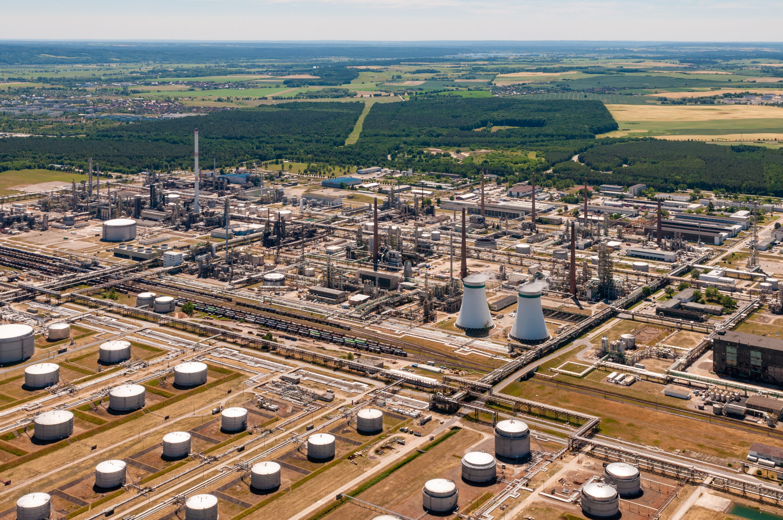 Das Gelände der PCK-Raffinerie in Schwedt/Oder aus der Luft.