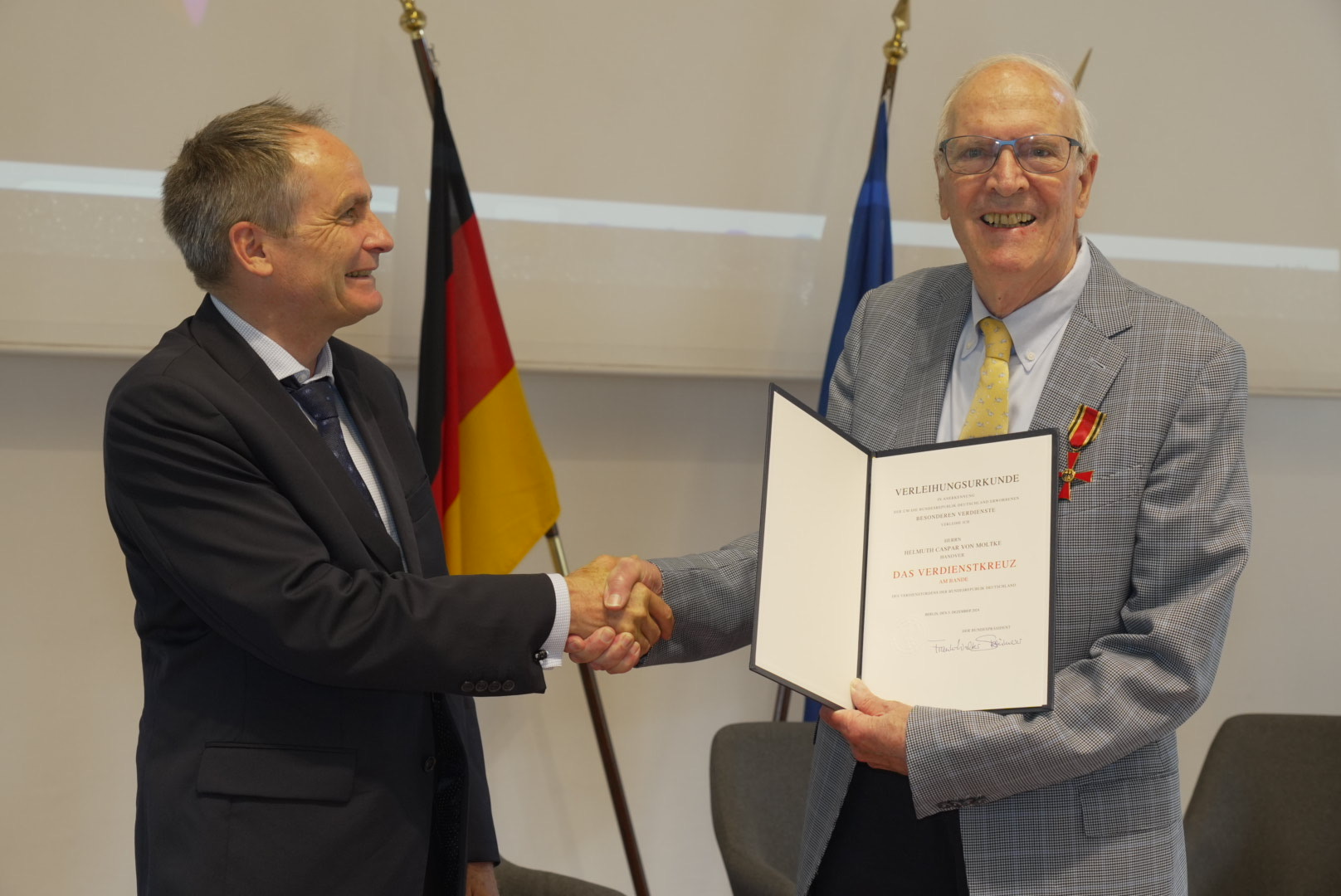 (r.) Helmuth Caspar von Moltke wurde mit dem Bundesverdienstkreuz ausgezeichnet