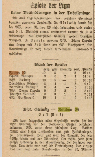 Ratibor 03 auf dem ersten Tabellenplatz der Liga im Dezember 1929. Ausschnitt aus der Oberschlesischen Volksstimme (1929, Jg. 55, Nr. 346).