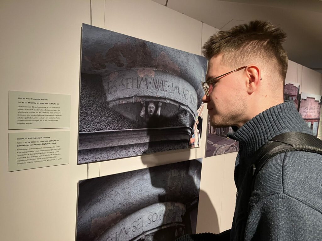 Die Präsentation „Zeichen der Zeit“ wurde mit einer Podiumsdiskussion eröffnet. Neben den Ausstellungsautoren diskutierten Lucjan Dzumla vom Haus der deutsch-polnischen Zusammenarbeit und Daniel Gibski, Denkmalschutzbeauftragter der Woiwodschaft Niederschlesien (Breslau). Letzterer erklärte dem zahlreich angereisten Publikum, wie sein Amt mit dem Inschriftenerbe umgeht.