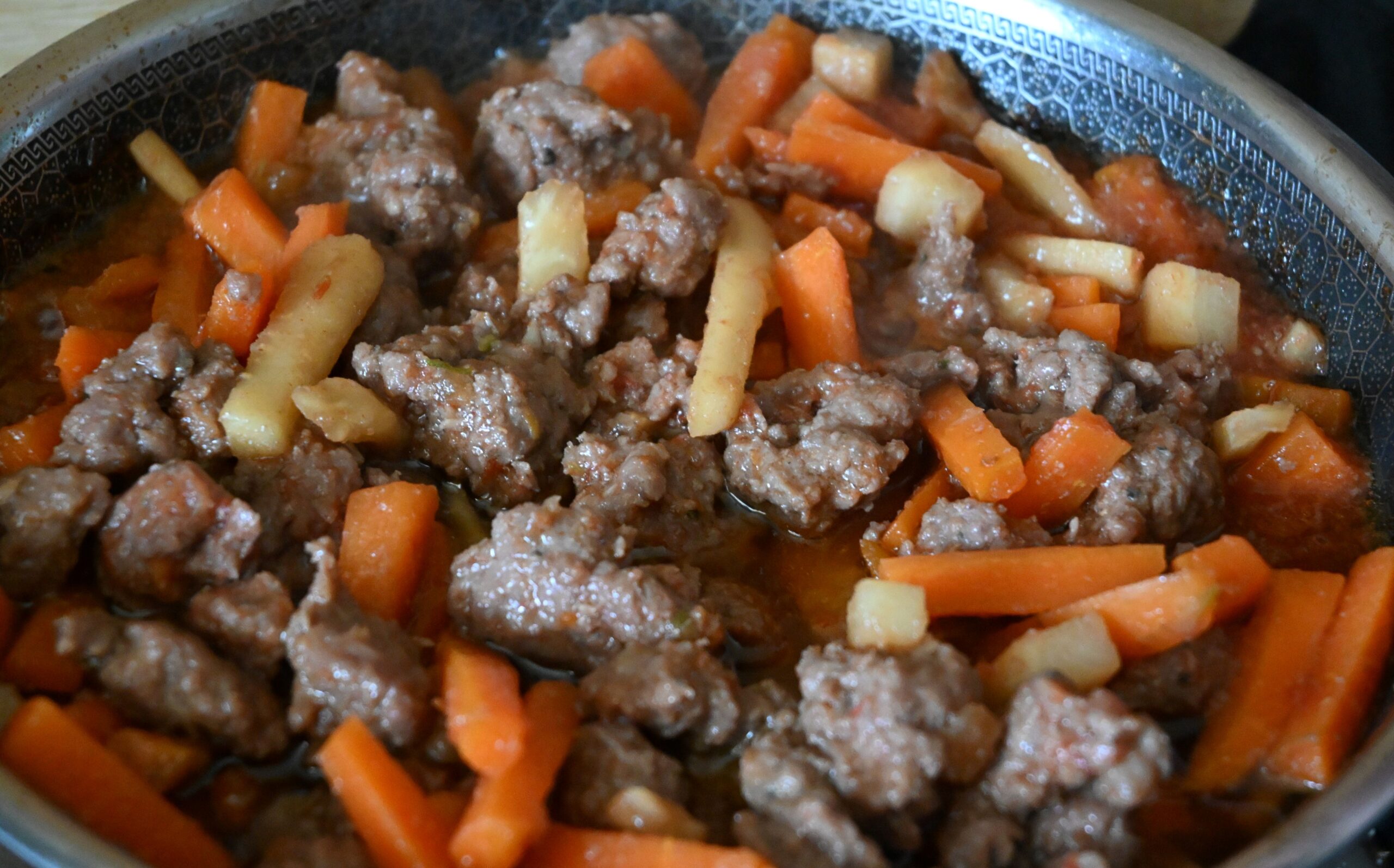 Ein Kilogramm Lammfleisch wird in zierliche Stücke zerschnitten, gewaschen, mit Salz und etwas gestoßenem weißen Pfeffer bestreut, dann zuerst in Butter geschmort und hierauf mit einer Bouillon übergossen und unter Hinzufügung von einer Zwiebel, Wurzelwerk, Macis, einem Lorbeerblatt und zwei Gewürznelken gut zugedeckt langsam weichgedämpft. Sobald das Fleisch beinahe butterzart ist, seiht man die Brühe durch, tut 2–3 EL Tomatenmark und ein halbes Glas Weißwein hinzu, verdickt sie mit einer hellen Mehlschwitze und richtet sie über dem Fleisch an.