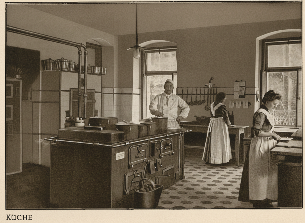 Dr. Weicker’s Küche im Sanatorium Marienhaus Görbersdorf-Schmidtsdorf Kreis Waldenburg 1915.