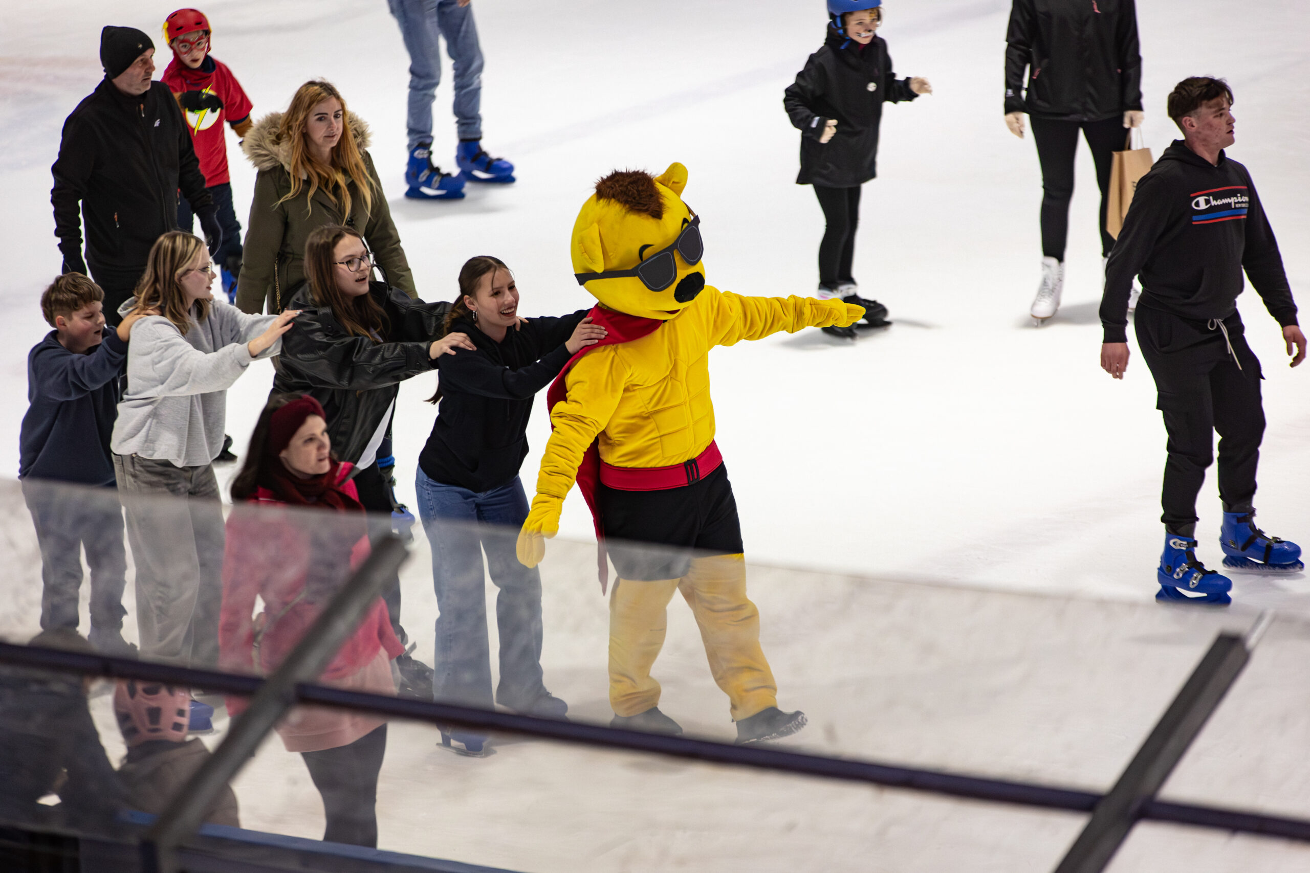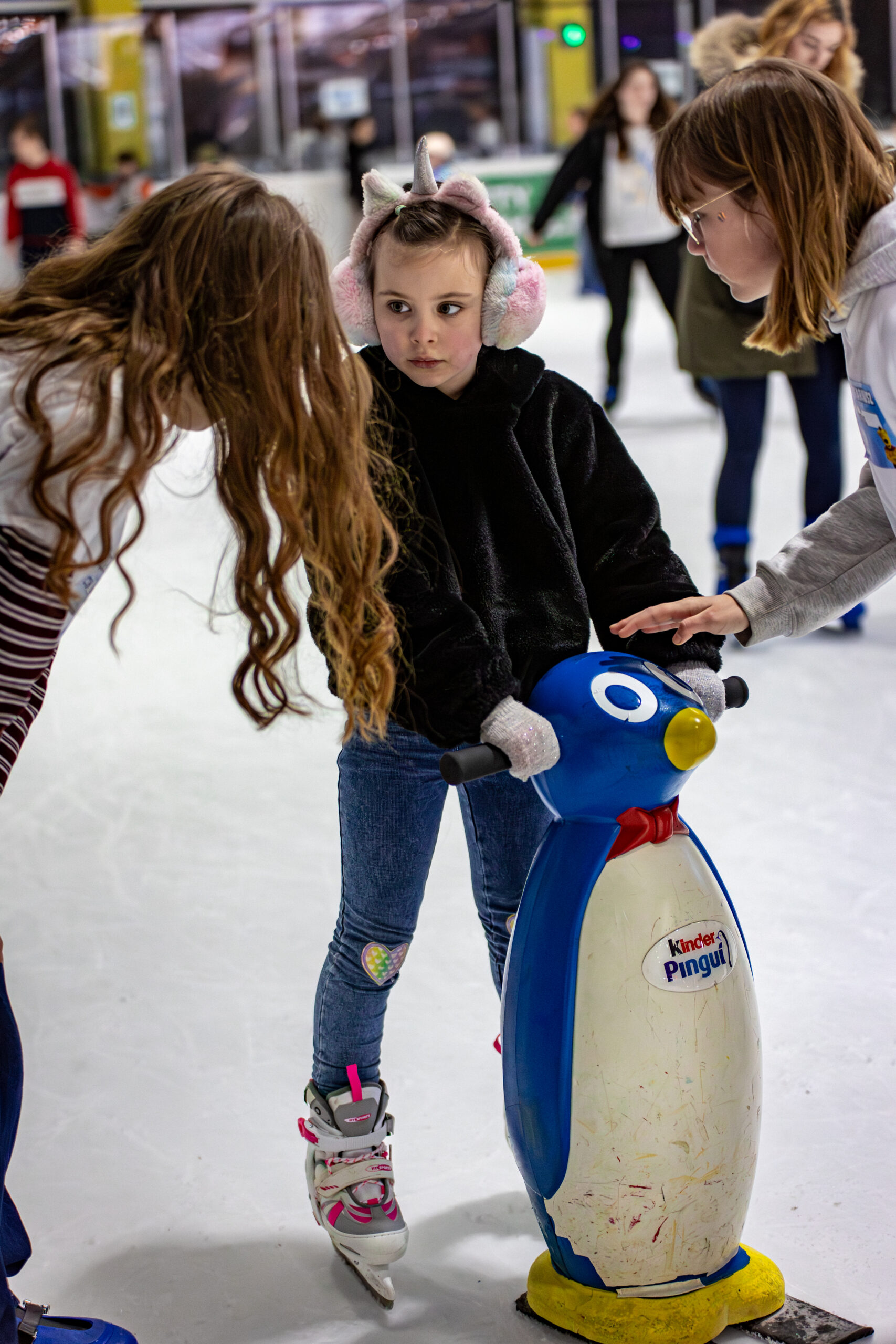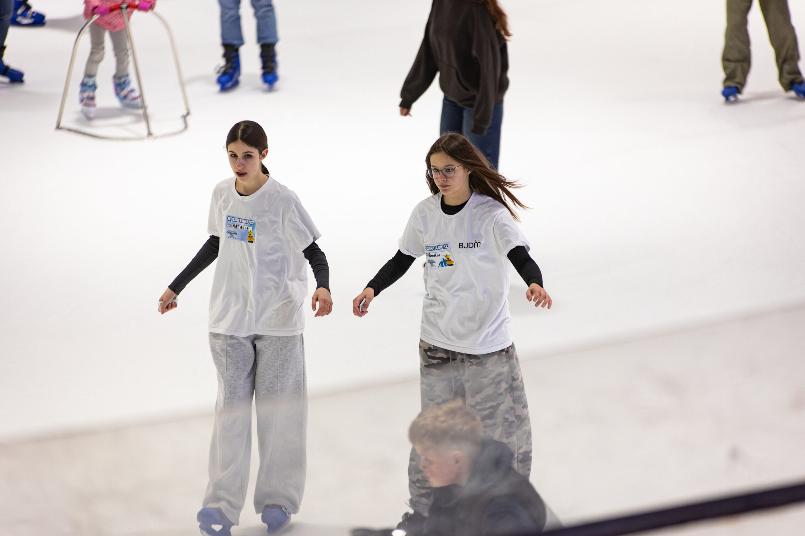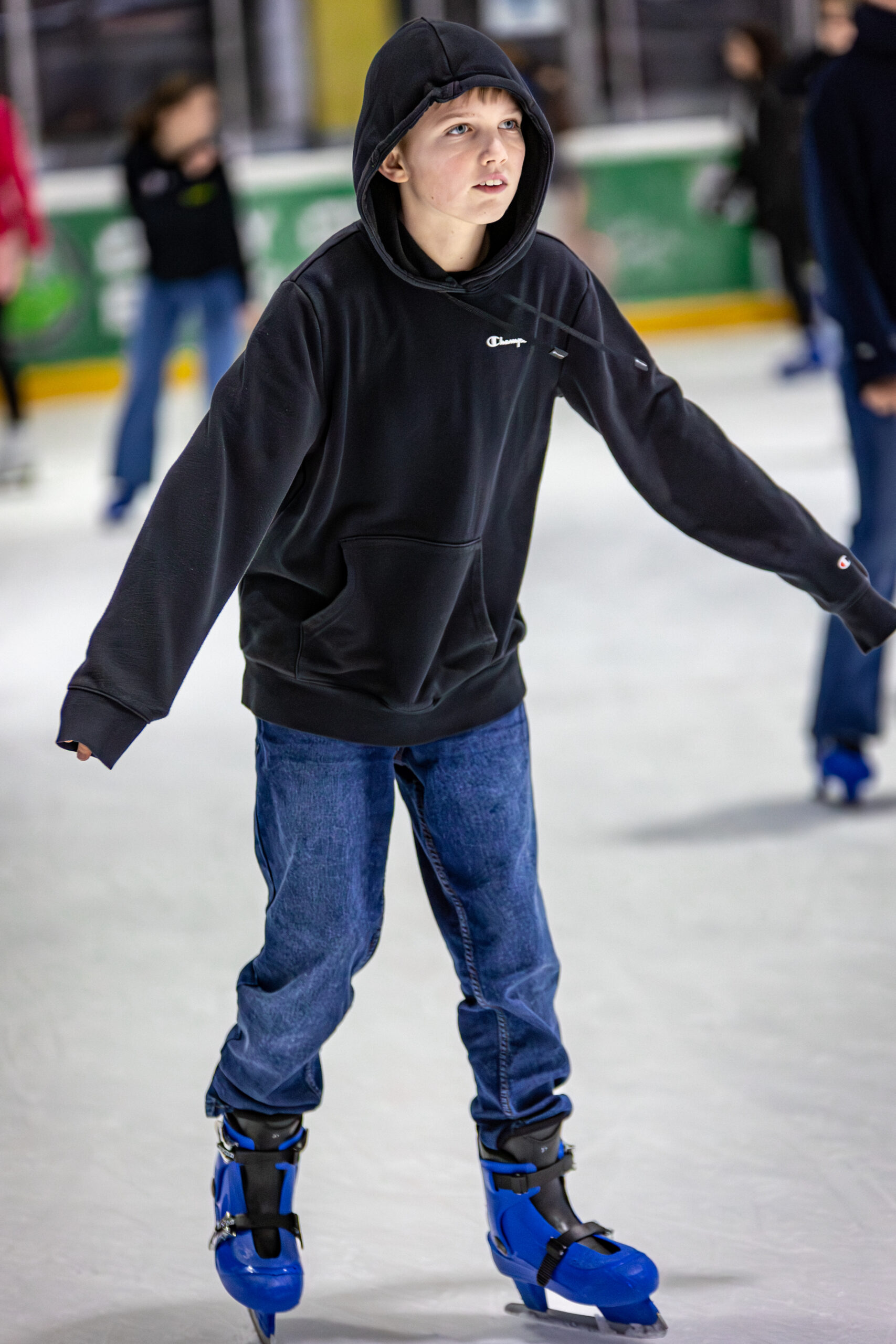 Die Kinder aus den Betreuungseinrichtungen hatten freien Eintritt, Leihschlittschuhe sowie eine warme Mahlzeit. Auf dem Eis sorgten Freiwillige für ihre Sicherheit.