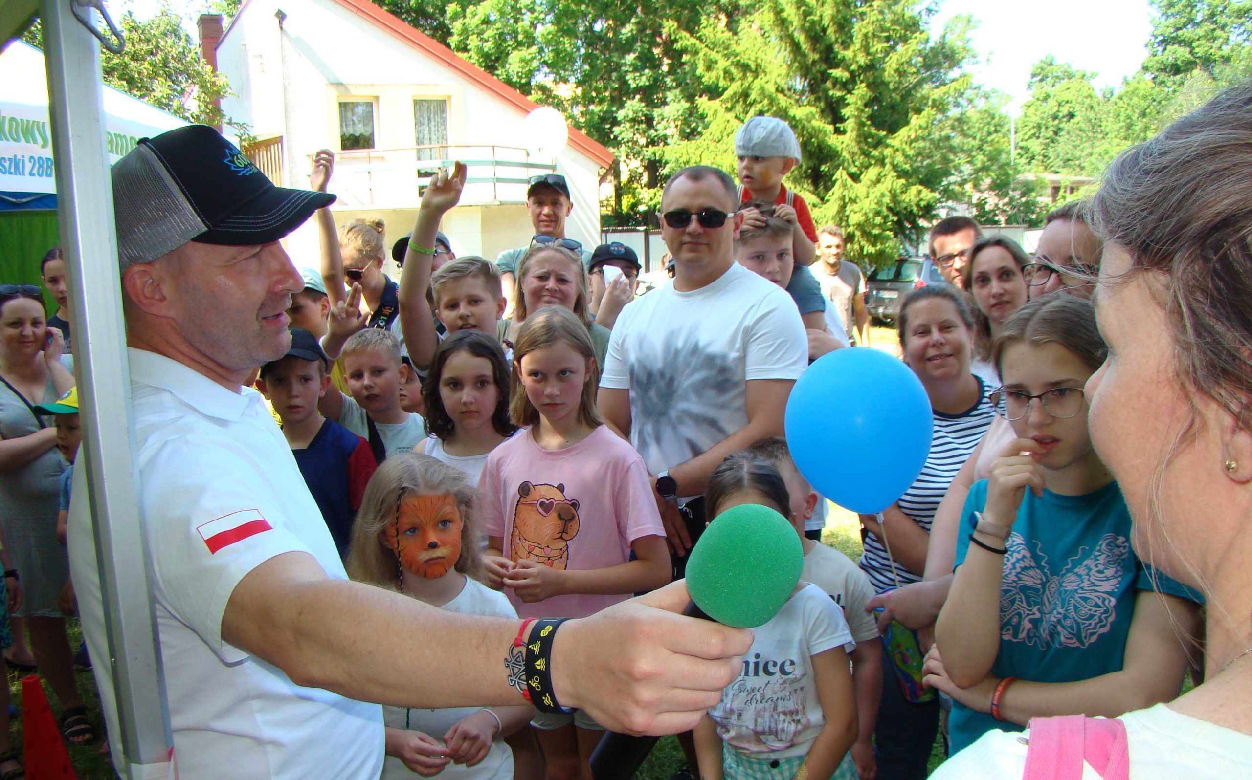 Auf dem Gelände stellte die Stadt verschiedene Stände auf: eine Hüpfburg, Kinderschminken, Zöpfe flechten, Spiel- und Bastelstationen, Essensstände, aber auch eine Erste-Hilfe-Vorführung und eine Mini-Verkehrsstadt für Kinder. Animatorinnen unterhielten die Kinder mit Spielen und Wettbewerben. Ein Quiz über Lyck leitete Bürgermeister Andrukiewicz persönlich – und verteilte großzügig Preise an die Teilnehmenden.