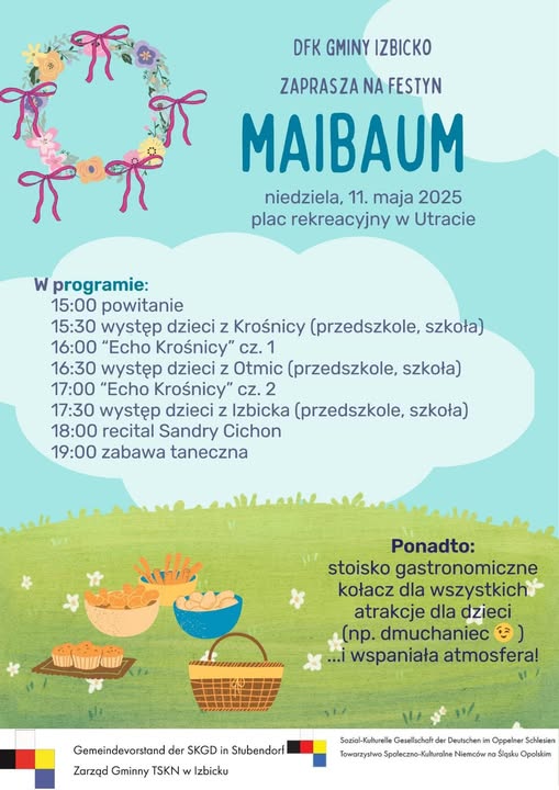DFK in der Gemeinde Stubendorf veranstaltet am 11. Mai ein Maibaumfest auf dem Erholungsplatz in Zauche (Utrata). Beginn ist um 15.00 Uhr. Im Programm: Auftritte der Kinder, Kroschnitzer Echo, Auftritt von Sandra Cichon, Tanzparty ab 19.00 Uhr.