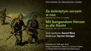 Am 21. Oktober findet in Groß Stein im Sebastianeum Silesiacum eine Veranstaltung zum Buch „Mit bangendem Herzen in die Nacht. Tagebuch eines oberschlesischen Soldaten des Ersten Weltkriegs“ statt. Die Moderation übernimmt Szymon Szwajger, als besonderer Gast wird Gerard Wons, Zeitzeuge, anwesend sein. Die Veranstaltung findet im Rahmen des Archivs der gesprochenen Geschichte statt, der Eintritt ist frei. Beginn: 18:45 Uhr.
