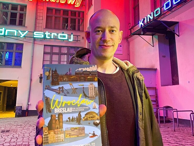 Mirko Seebeck, einer der Macher des Bolgs WroclawGuide, mit seinem Reiseführer.