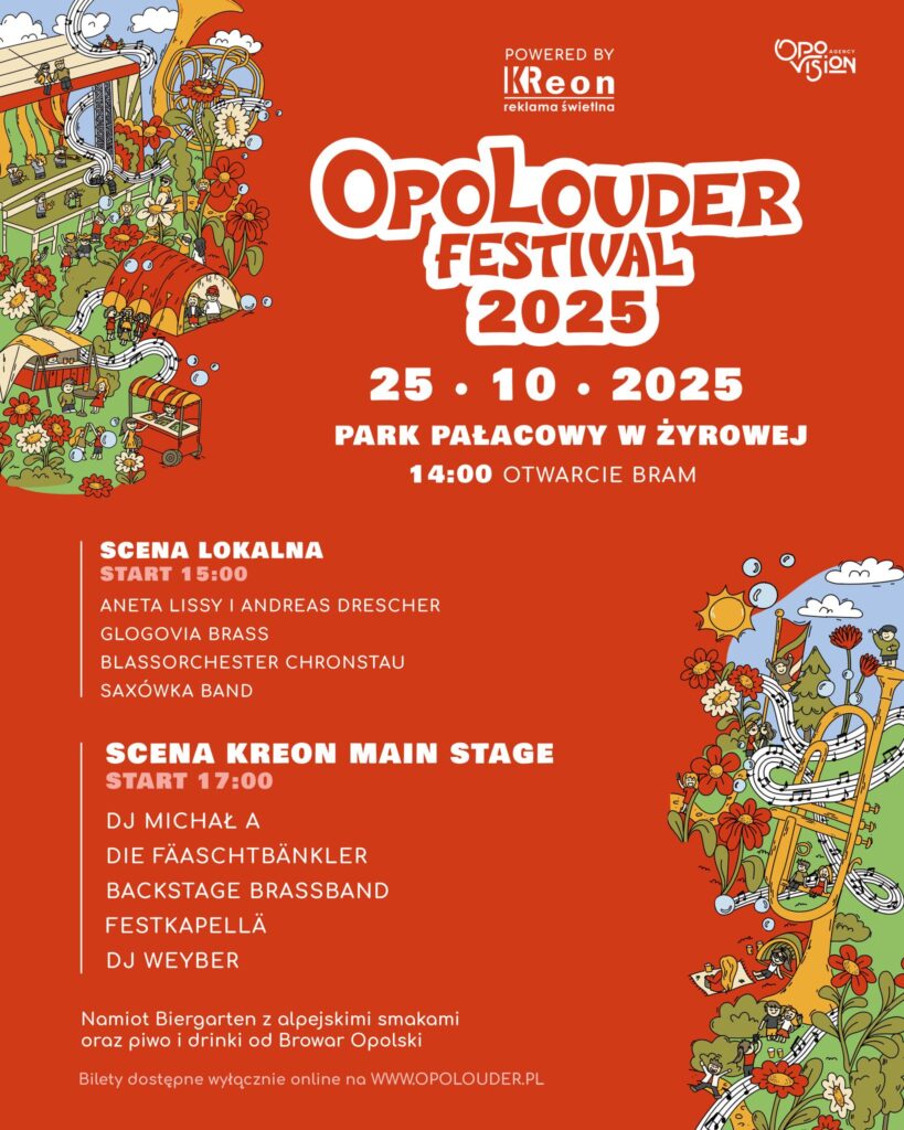 Die Vorbereitungen für das OpoLouder Festival 2025 laufen auf Hochtouren! Am heutigen 25. Oktober startet in dem Schlosspark in Zyrowa (Gemeinde Deschowitz) ein Tag voller Musik und unvergesslicher Erlebnisse! Um sicherzustellen, dass Ihr Euch auf dem Festivalgelände problemlos zurechtfindet, haben wir diesen Guide für Euch vorbereitet.