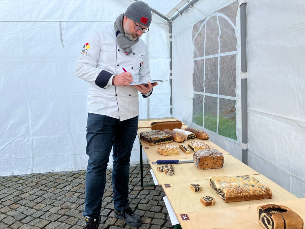 Stollenprüfer André Bernatzky musste sich durch zig Weihnachtsstollen durchbeissen. Sein Urteil: Jenseits der Neiße wird an Zucker nicht gespart.