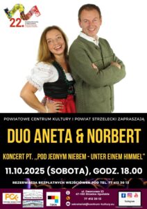 - Das Duo Aneta und Norbert gibt es im Kulturhaus in Groß Strehlitz mit dem Konzert „Unter einem Himmel“ und vielen beliebten deutschen Schlagern.
