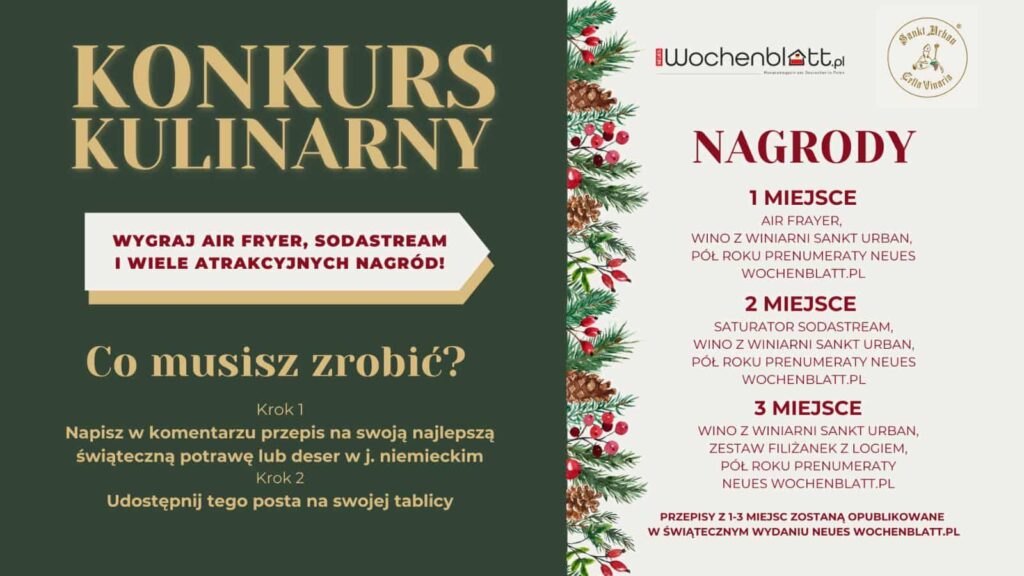 • Das Neue Wochenblatt.pl startet pünktlich zum Advent einen Kulinarischen Wettbewerb auf dem Facebook-Profil Neues Wochenblatt.pl.