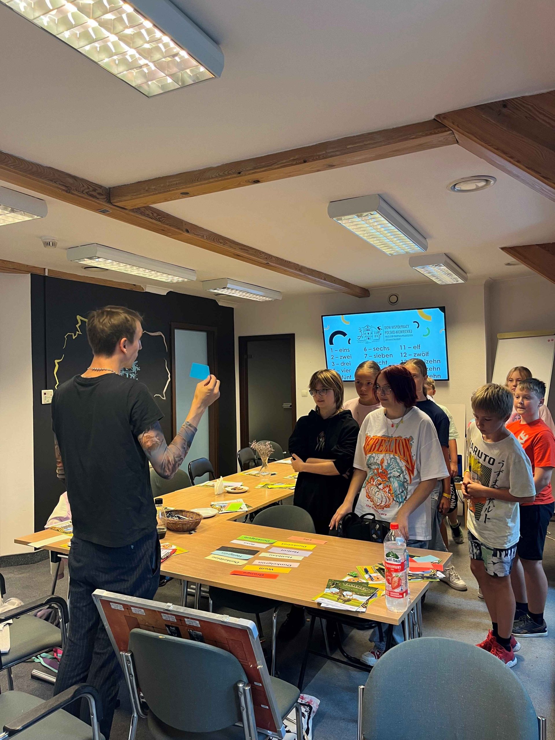 Brücken bauen durch Sprache: Johannes Schmidt leitet eine Sprachanimation für Schüler:innen.