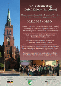 Am Sonntag, 16. November 2025, 14:30 Uhr, findet in der Pfarrkirche „Maria, Hilfe der Christen“ in Königlich Neudorf (Plac Kościelny 2a) eine besondere Veranstaltung zum Volkstrauertag statt.