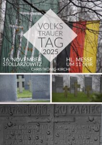 Am Sonntag, 16. November, 11:00 Uhr, wird in der Christus-König-Kirche in Stollarzowitz eine heilige Messe in deutscher Sprache gefeiert – zum Gedenken an die Opfer von Kriegen und totalitären Regimen.