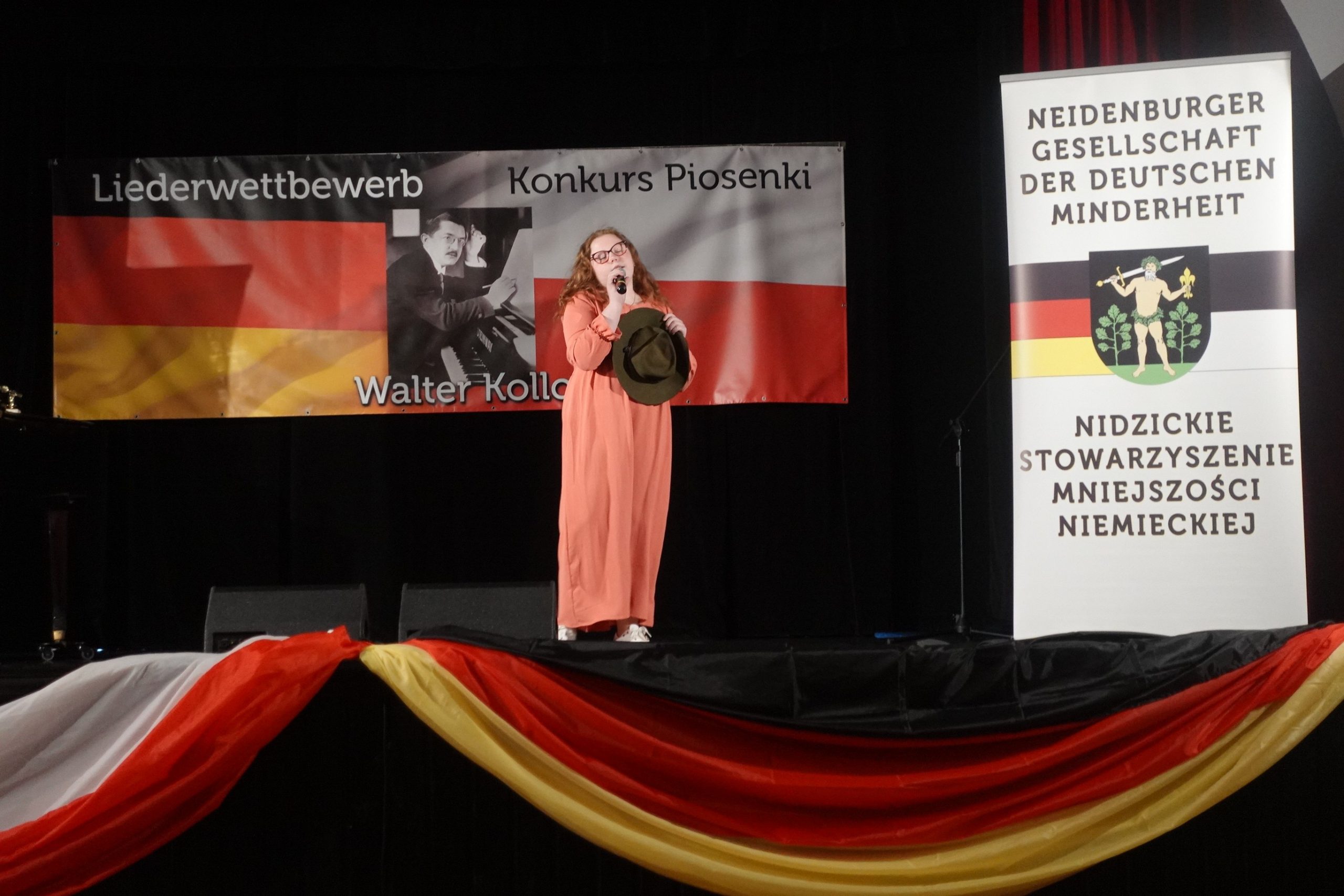 Auf die Bühne wagten sich am Vormittag neun Sängerinnen aus Lahna/Łyna, Roggenhausen/Rogóż, Rontzken/Rączki und Grünfließ/Napiwoda in drei Altersklassen. Unter dem Bild von Walter Kollo trugen sie jeweils zwei Lieder vor, mit denen sie die Jury und das Publikum beeindrucken wollten. Mit Argusaugen und geschärften Ohren verfolgten die drei Mitglieder der Jury – Ela Łubkowska vom Chor der Neidenburger Gesellschaft der deutschen Minderheit, Marcin Bąkowski, der neben diesem Chor in Neidenburg noch zwei andere Chöre leitet, und Uwe Hahnkamp als Vertreter der deutschen Minderheit in der Region – die Auftritte.