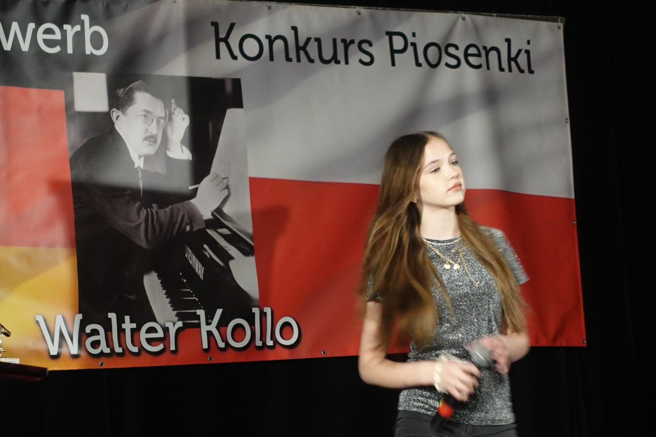 Nicht jedoch bei Maria Zuzanna Dytrych aus Grünfließ. Die Siegerin des letzten Jahres geht inzwischen in die achte Klasse der Grundschule und wird im nächsten Schuljahr auf das Lyzeum wechseln. Sie präsentierte das Lied „Die immer lacht“ von Kerstin Ott und wagte sich sogar an ein A-Cappella-Stück. Die restlichen Kandidatinnen und Kandidaten blieben bei musikalischer Begleitung von CD.