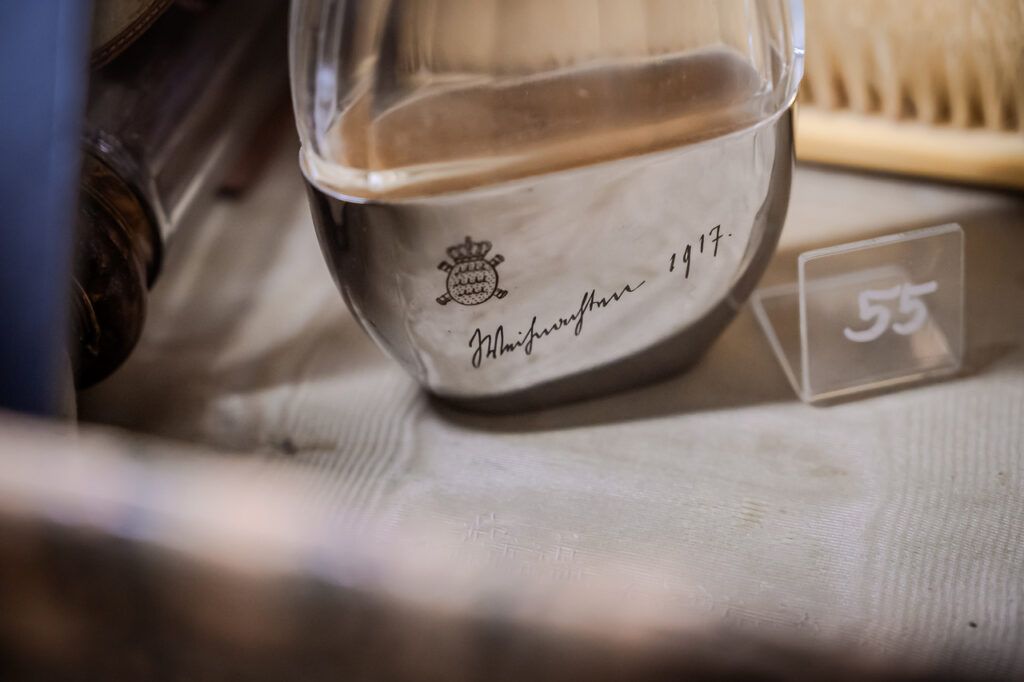 Meine Aufmerksamkeit wurde von einem winzigen Fläschchen mit der Aufschrift „Weihnachten 1917“ angezogen. Mir wurde klar, dass dies das letzte Weihnachtsfest Wilhelms II., des letzten Königs von Württemberg, war, der am 30. November 1918 abdankte. Während der Vernissage ergriff Herzogin Sophie von Württemberg, Tochter von Herzog Albrecht, dem letzten Besitzer von Carlsruhe, und Herzogin Nadezhda, Tochter des letzten Königs von Bulgarien, Ferdinand I., das Wort und dankte für die Pflege der Erinnerung an Carlsruhe. Ich dachte mir, dass die Geschichte lebt.
