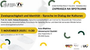 Mit diesen Fragen beschäftigt sich der Vortrag „Zweisprachigkeit und Identität – Sprache im Dialog der Kulturen“, den das Haus der Deutsch-Polnischen Zusammenarbeit (HDPZ) am 7. November 2025 um 11:30 Uhr in der Blauen Aula der Universität Oppeln (Plac Kopernika 11) organisiert.