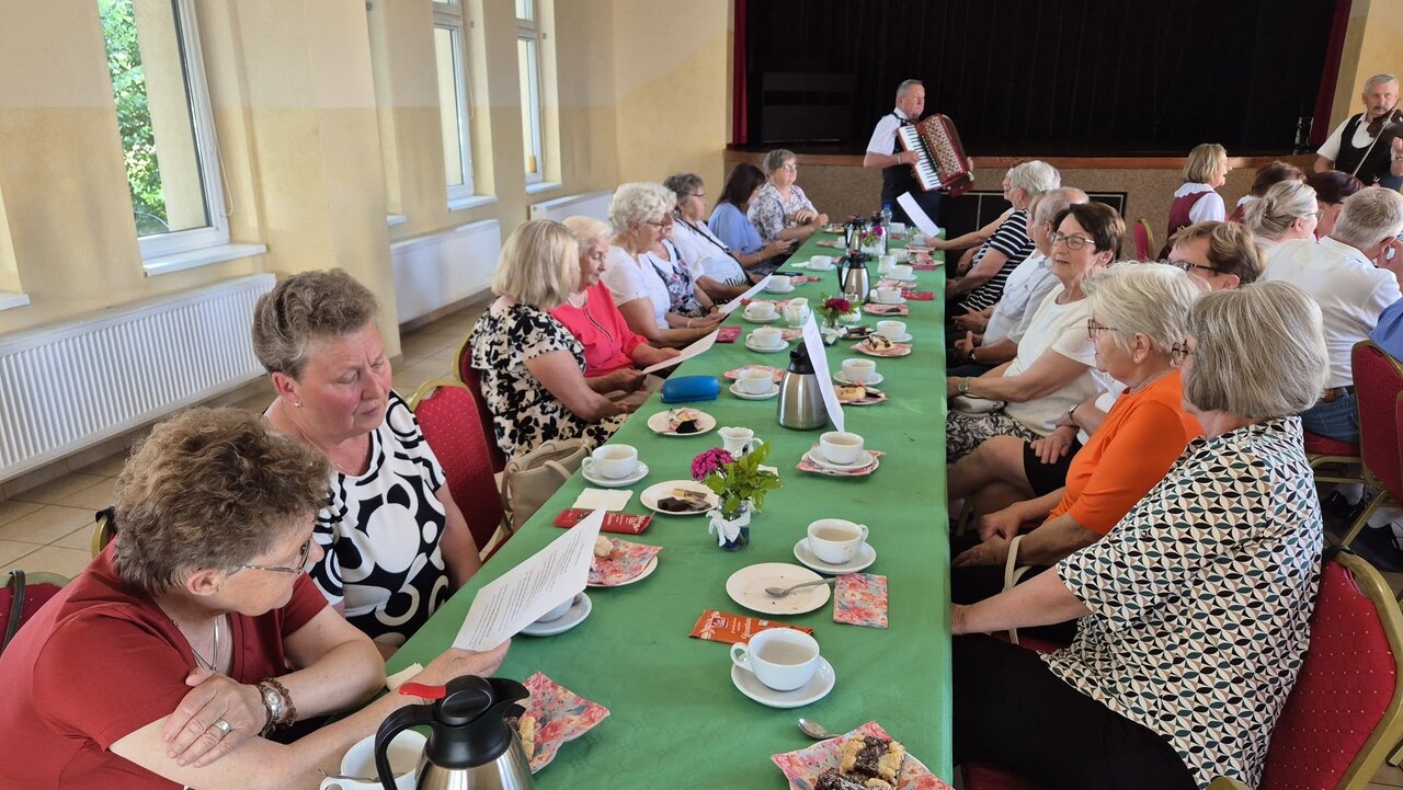 Am Sonntag, den 15. Juni, feierte der DFK Colonnowska traditionsgemäß den Mutter- und Vatertag! Für besondere Stimmung sorgte der musikalische Auftritt von Jorguś Wilczek, der gemeinsam mit der Folkloregruppe aus Malapane auf seinem Akkordeon spielte. Es erklangen zahlreiche bekannte und beliebte Schlager, die das Publikum zum Mitsingen und Mitklatschen animierten. Wie immer durfte auch die gemütliche Kaffeerunde mit leckerem Kuchen nicht fehlen – es wurde viel gelacht und geplaudert. Ein herzliches Dankeschön gilt allen Gästen sowie allen, die bei der Organisation dieses schönen Festes mitgewirkt haben!