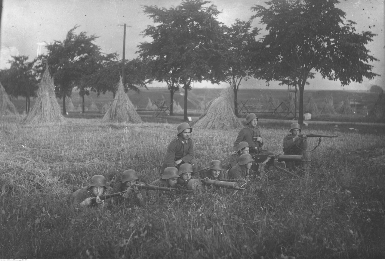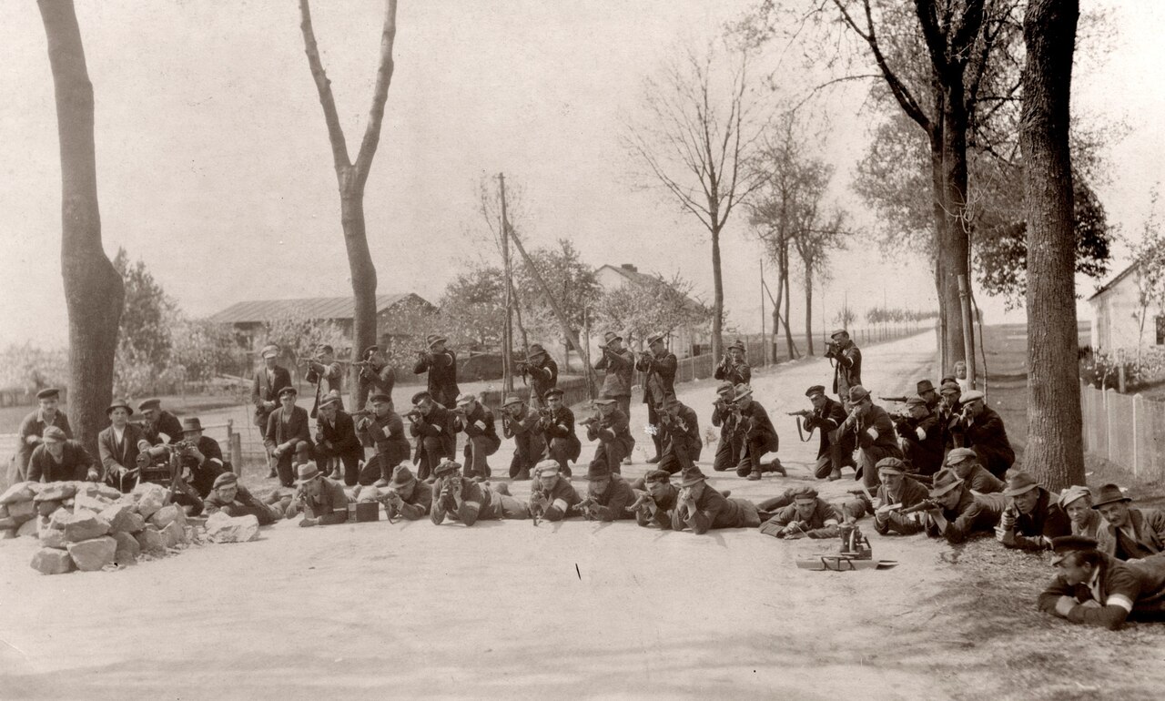 Polscy powstańcy zabezpieczający drogę podczas konfliktu polsko-niemieckiego