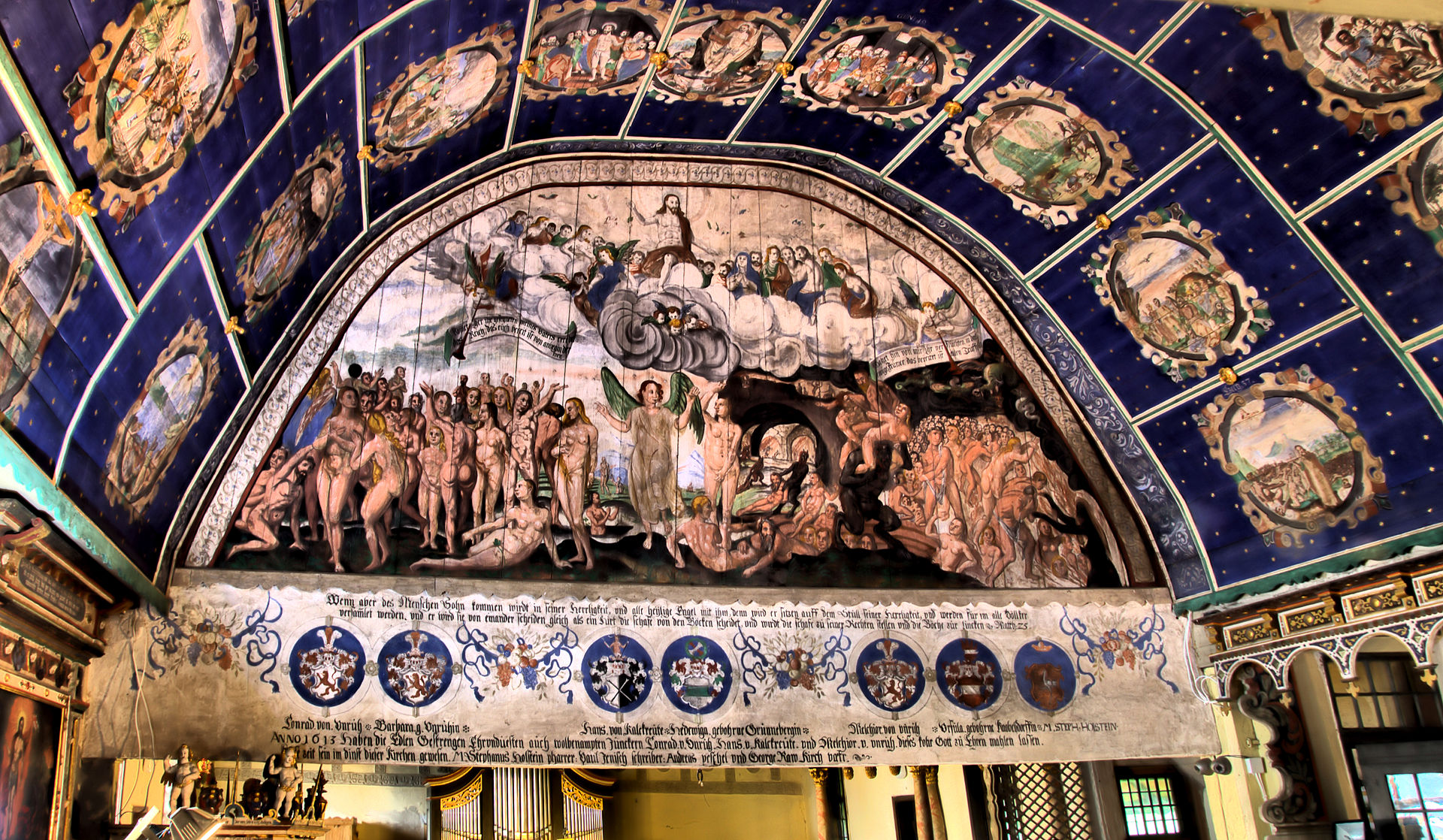 Sceny biblijne, cnoty chrześcijańskie i Sąd Ostateczny