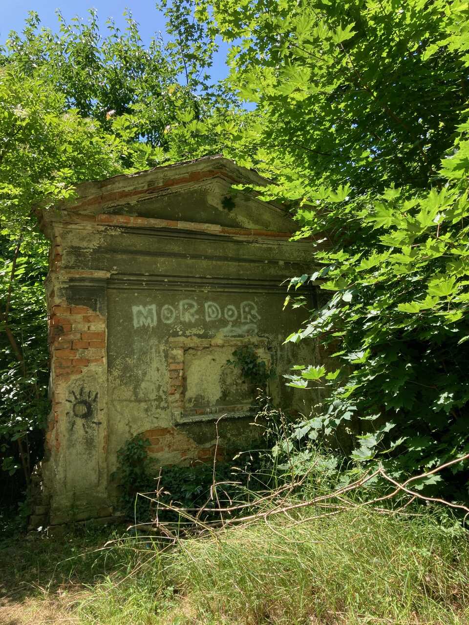 Wysoka trawa, porozrzucane fragmenty niemieckich nagrobków, śmieci, potłuczone szkło, puszki po piwie – taki widok wita dziś każdego, kto zapuści się na to historyczne wzgórze. Na fragmencie muru widnieje napis Mordor. I trudno chyba o lepszy komentarz.