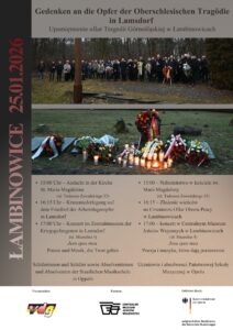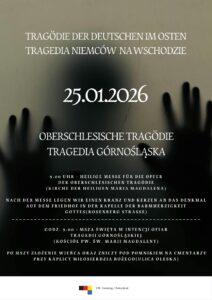 Związek Niemieckich Stowarzyszeń Społeczno-Kulturalnych w Polsce (VdG) wraz z partnerami serdecznie zaprasza na uroczyste upamiętnienie ofiar Tragedii Górnośląskiej. Wydarzenie odbędzie się w niedzielę, 25 stycznia 2026 r. według następującego programu: