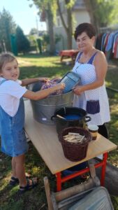 Podczas wydarzenia dzieci mogły spróbować swoich sił w wielu tradycyjnych zajęciach, które kiedyś były nieodłączną częścią wiejskiej codzienności. Jedną ze stacji była produkcja masła i kiszonej kapusty, prowadzona przez doświadczone gospodynie z Raszowej. Uczestnicy mogli również robić makaron, ciasteczka z maszynki oraz aromatyczne kompoty. Wszystkie te czynności pozwalały dzieciom poznać codzienne życie na wsi sprzed lat.