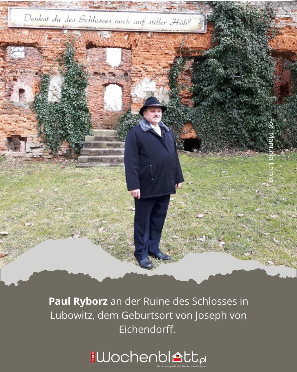 Odegrał kluczową rolę w przywróceniu imienia hrabiego Josepha von Eichendorffa do publicznej świadomości w rejonie Łubowic i poza nim: Mowa oczywiście o Pawle Ryborzu, który od 2009 roku pełnił funkcję prezesa Górnośląskiego Centrum Kultury i Spotkań w Łubowicach. Oficjalnie przeszedł na emeryturę wczoraj, we wtorek. W ciągu ponad 16 lat swojej pracy przyczynił się do tego, że Łubowice, miejsce urodzenia Eichendorffa, ponownie upamiętniły tę wielką postać. Wszystko zaczęło się dość skromnie: