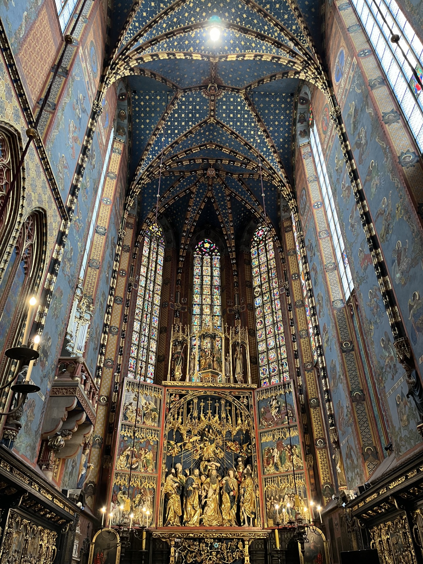 Wchodząc do kościoła Mariackiego, widzimy wysoką na 13 metrów i szeroką na 11 metrów konstrukcję wykonaną z ponad tysiącletniego dębu, malowaną i złoconą. Jest to największy gotycki ołtarz w Europie. Późnogotycki ołtarz skrzydłowy został stworzony przez niemieckiego rzeźbiarza i snycerza Wita Stwosza, który mieszkał w Norymberdze. Budowa ołtarza zajęła Stwoszowi dwanaście lat, zanim został on poświęcony w 1489 roku.