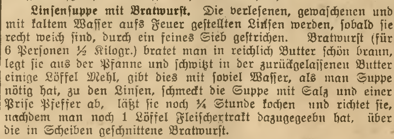 Przeglądając śląskie czasopisma, natrafiamy również na przepisy z soczewicy. „Der Oberschlesische Wanderer” (1935) zamieszcza reklamę Maggi, a w niej także opis ekspresowego przygotowania domowej zupy z soczewicą, podawanej z chrupiącymi grzankami.