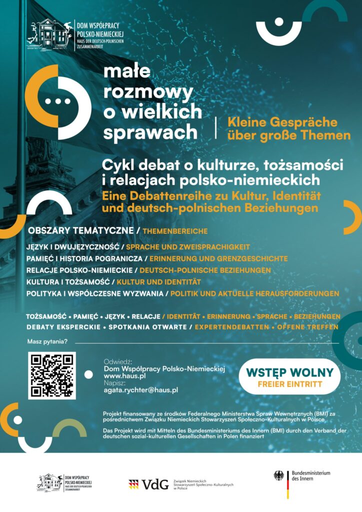 Cykl „Małe rozmowy o wielkich sprawach” to propozycja dla tych, którzy chcą nie tylko słuchać, ale również współtworzyć dialog – o przeszłości, teraźniejszości i przyszłości relacji polsko-niemieckich.