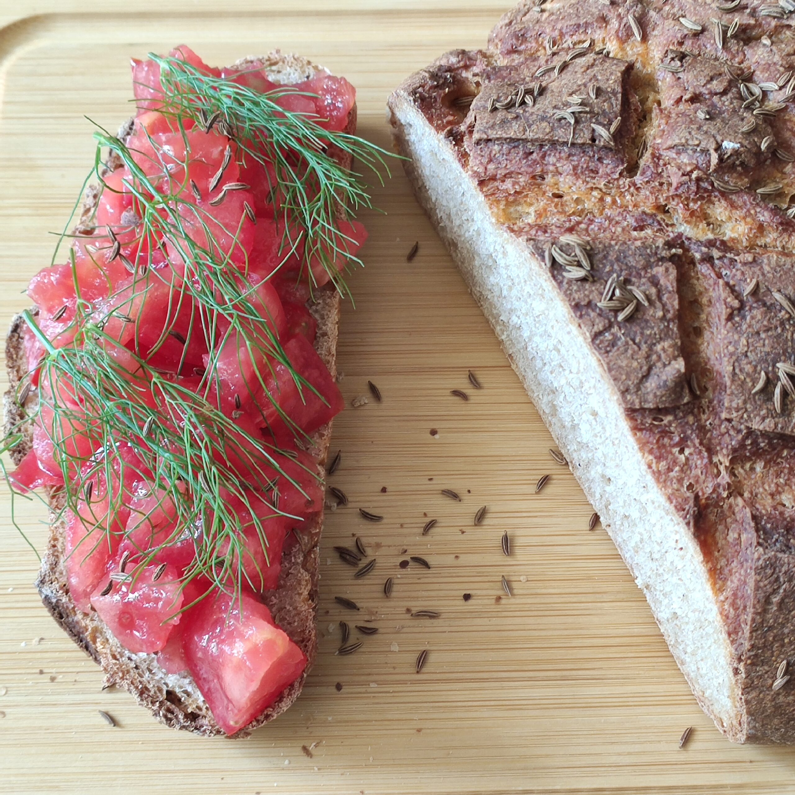 Prosta przekąska: Chleb piwny z kminkiem i aromatyczny pomidor ogrodowy