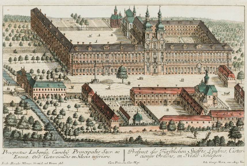 Miedzioryt przedstawiający opactwo cystersów w Lubiążu na Dolnym Śląsku, rok 1735