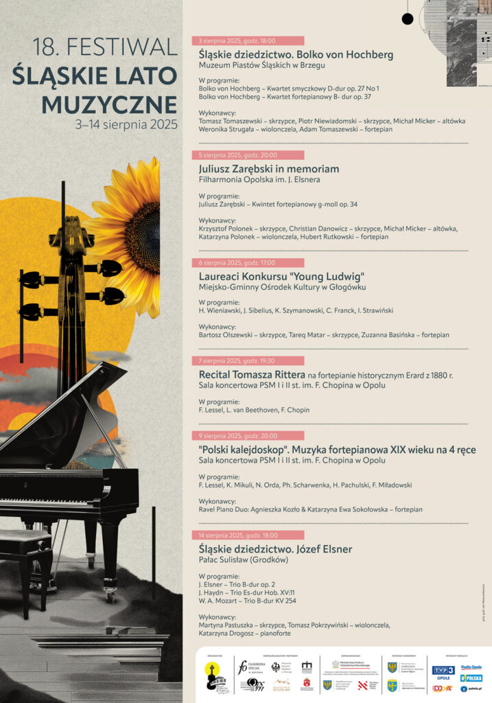 Wielki finał 18. edycji festiwalu odbędzie się 14 sierpnia o godzinie 18:00 w malowniczych wnętrzach Pałacu Sulisław w Grodkowie. Koncert pod hasłem „Śląskie dziedzictwo. Józef Elsner” wykonają Weronika Katusza (skrzypce), Tomasz Pokrzywiński (wiolonczela) oraz Katarzyna Drogosz (fortepian). W programie znajdą się tria Elsnera, Haydna i Mozarta, stanowiąc uroczyste zwieńczenie całego wydarzenia.