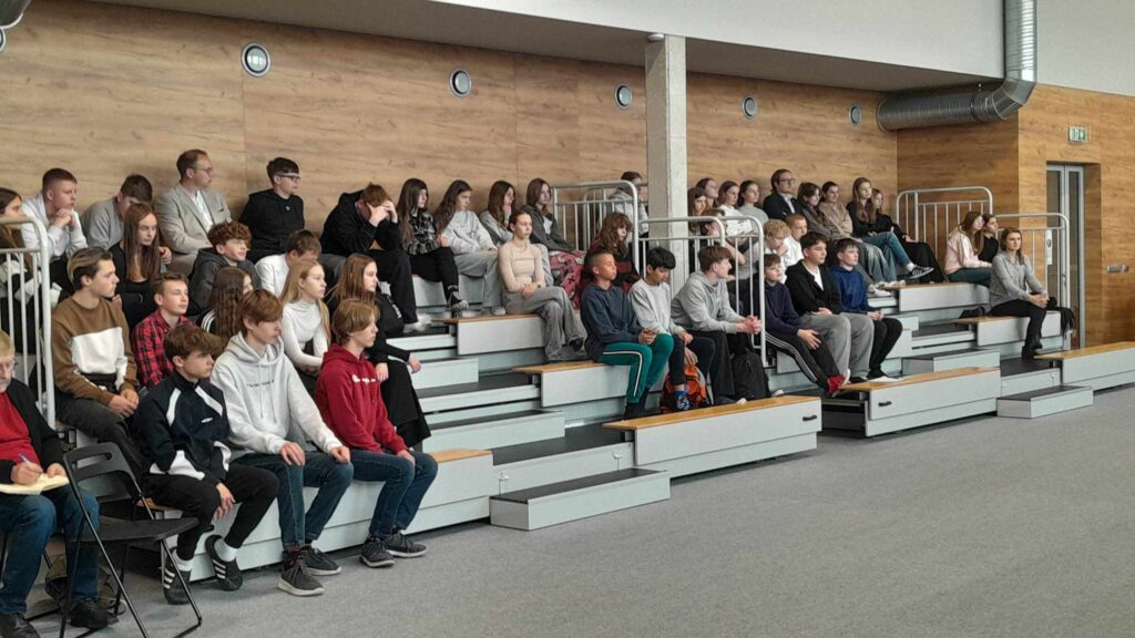 W szkole w Raszowej dr. Sebastian Rosenbaum opowiada młodzieży o Tragedii Górnośląskiej.