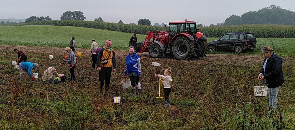 Na kartoflisku Ireny w sobotę 20 września pojawiła się mocna ekipa – 20 członków stowarzyszenia, w tym wiele dzieci, oraz jej mąż i synowie. Oni jeździli traktorem z kopaczką, a reszta albo zbierała ziemniaki, albo nosiła kosze i wysypywała je na łykę wielkiej koparki. W tej roli szczególnie aktywna była młodzież. Zbieranie kartofli poszło szybko i dokładnie. Niestety tegoroczny plon był mniejszy niż w poprzednim roku.