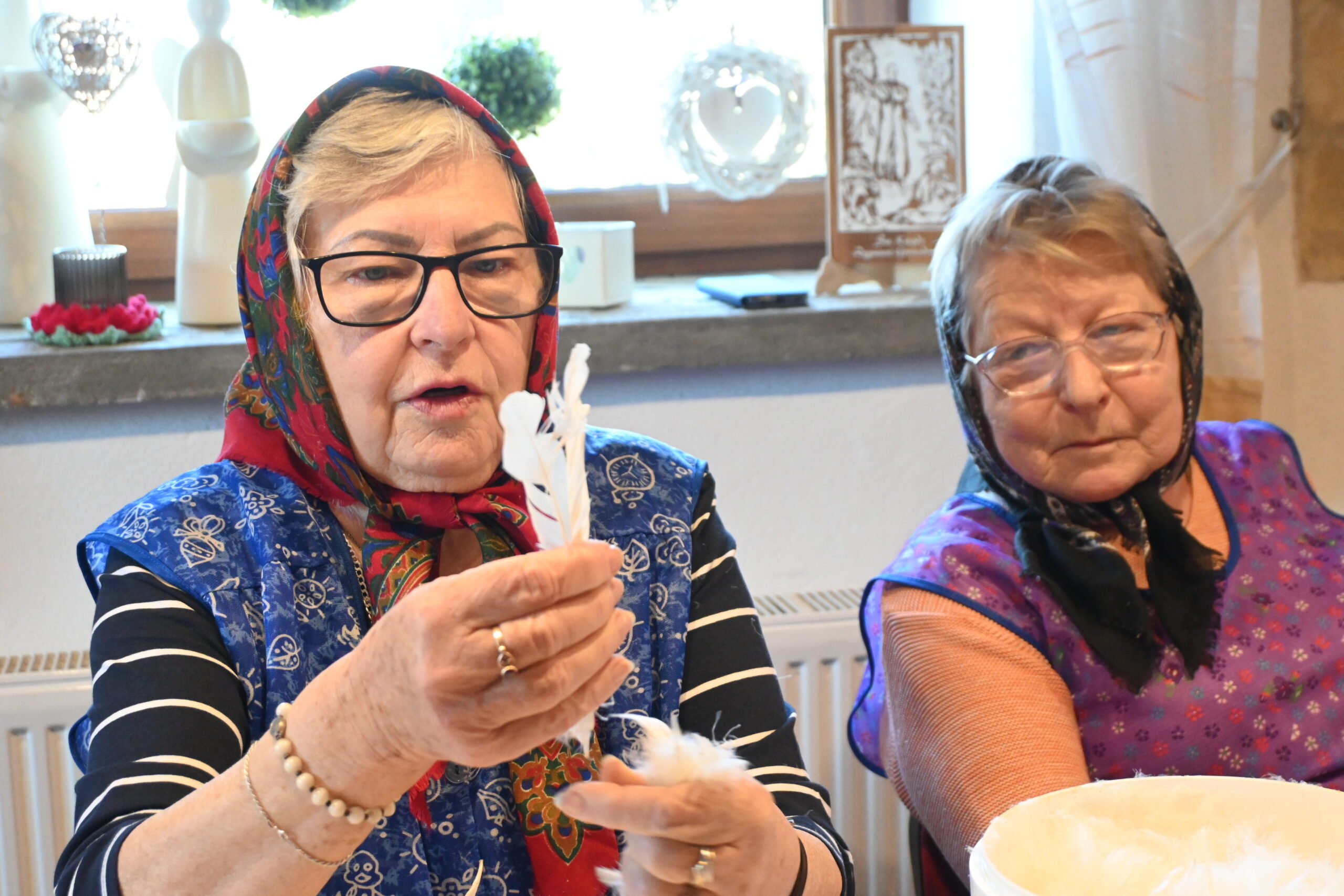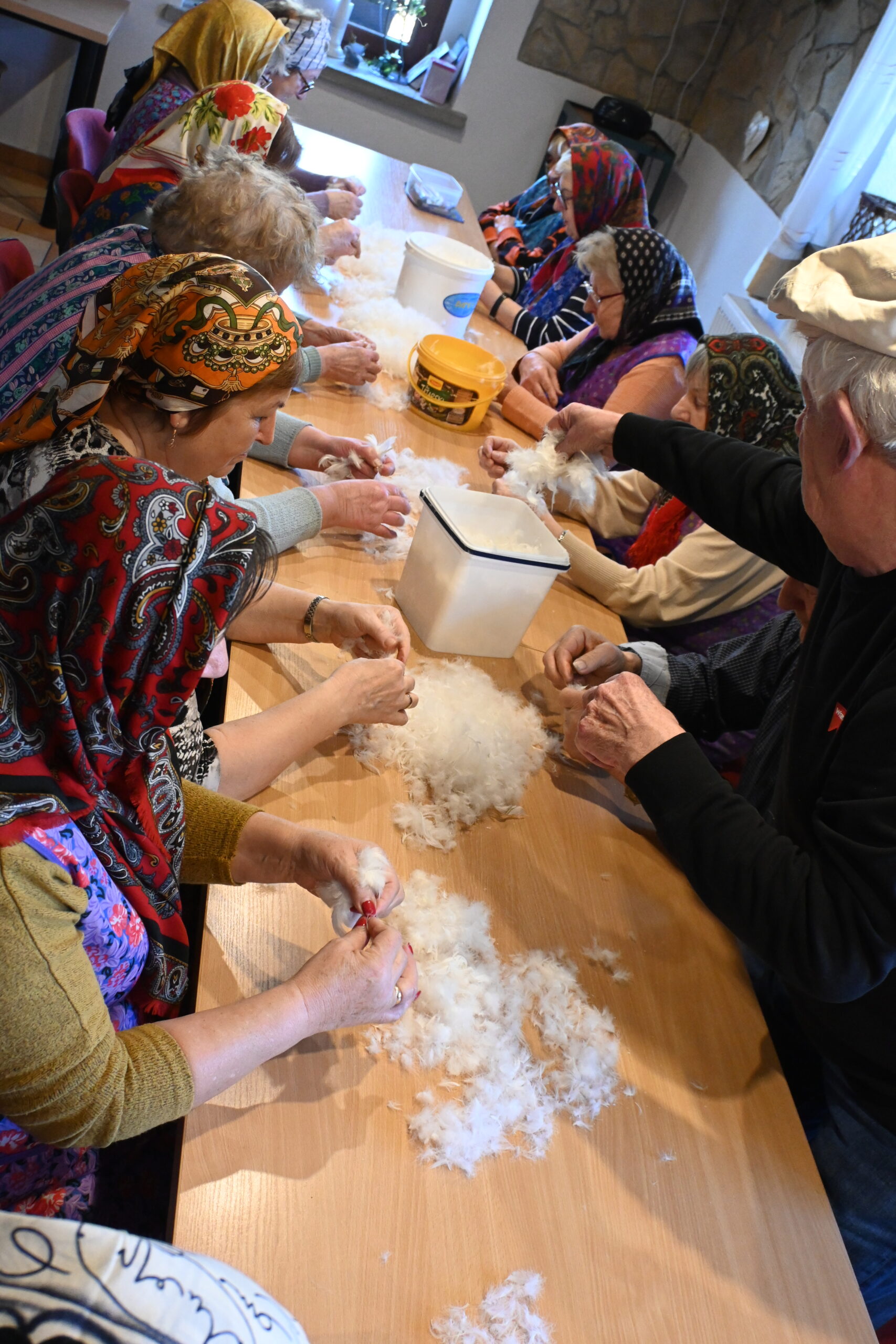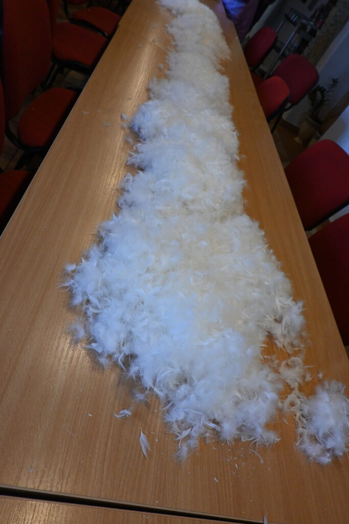 „Trzeba dobrze wyszkubać. Koduchy, czyli te twarde części, daje się do takich poduszek na krzesła kuchenne, a ten kwap (najdelikatniejszy puch) daje się do poduszki do spania” – tłumaczy Teresa Chluba, członkini Klubu Seniora i DFK Nakło.