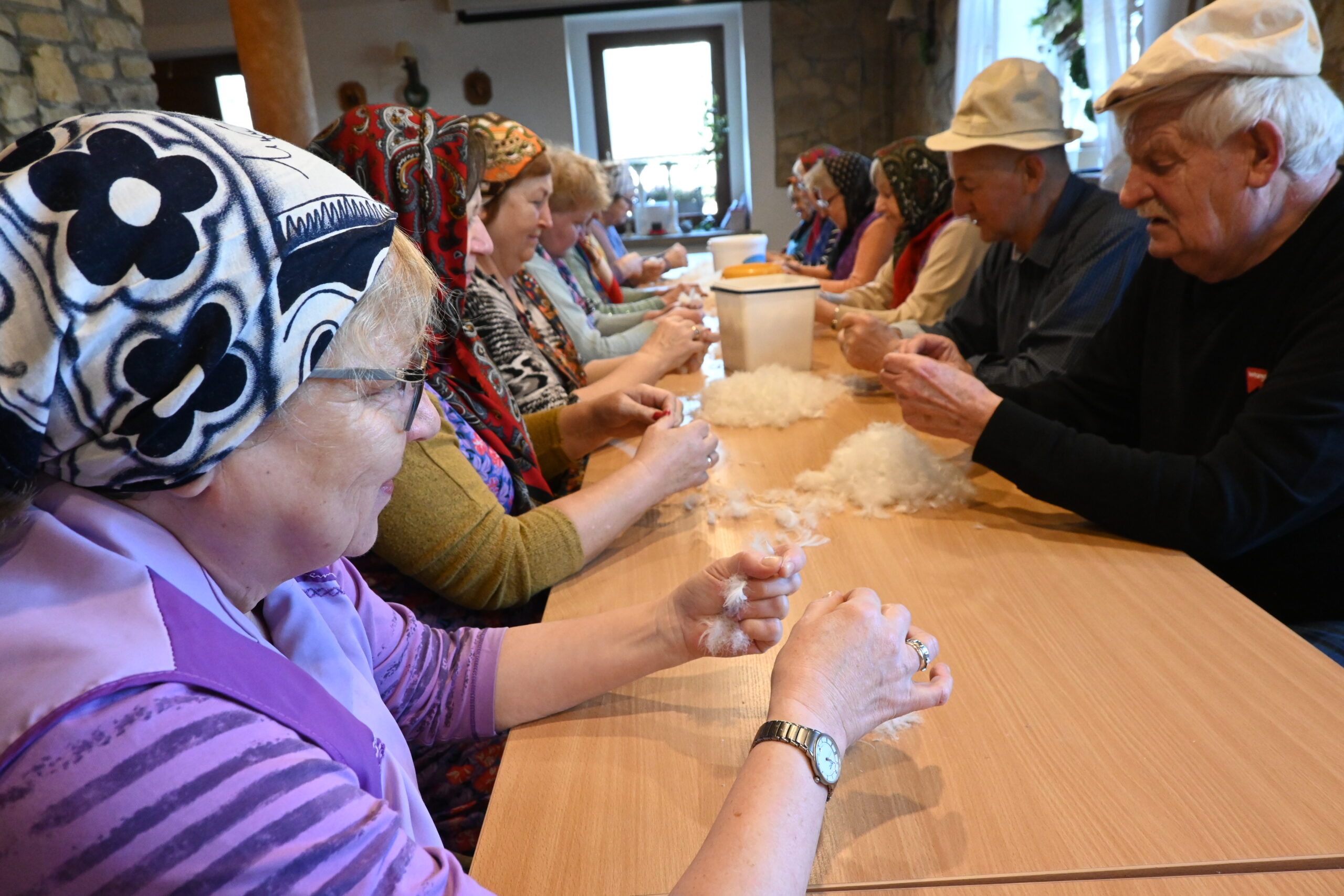 Darcie pierza to praca precyzyjna, wymagająca przestrzegania surowych, choć często zabawnych zasad. Przy stole w klubie seniorzy przekazywali sobie instrukcje: