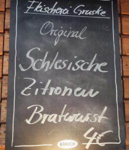 Auf dem Görlitzer Weihnachtsmarkt findet man traditionelle Wurst, die mit Zitrone verfeinert wurde.