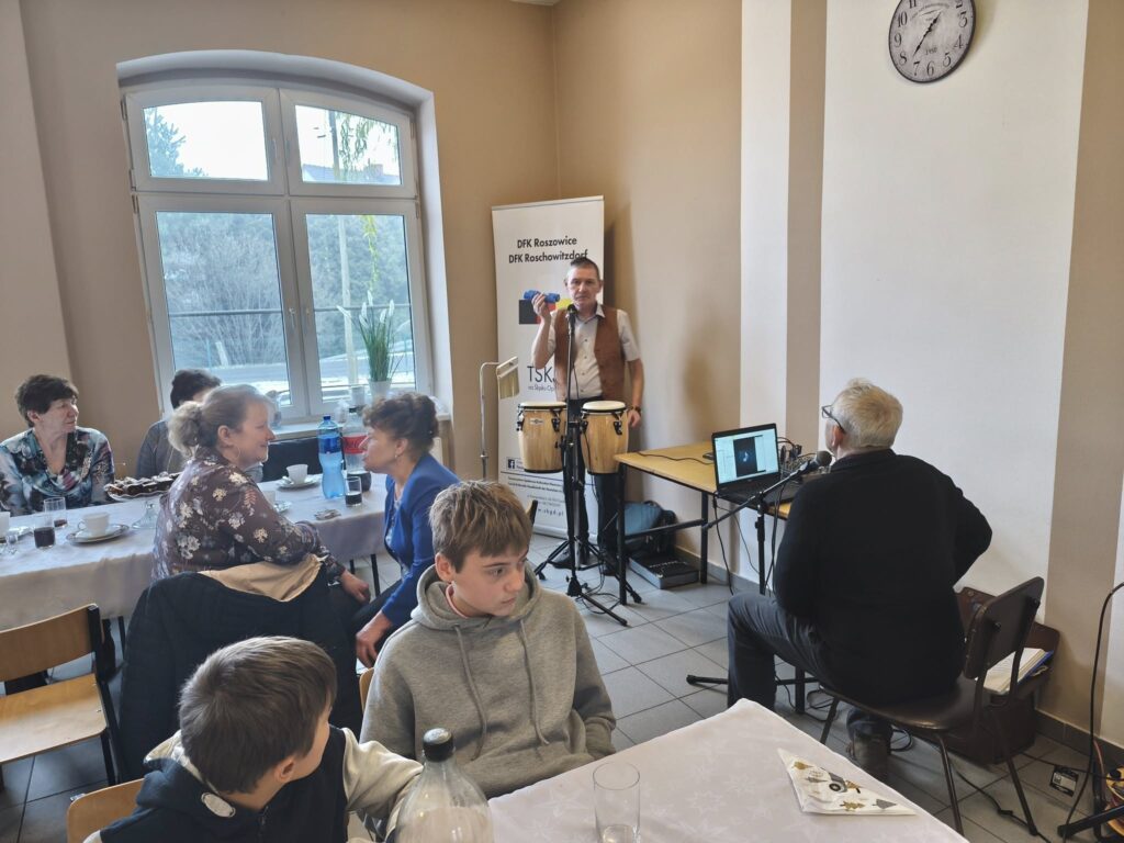 Następnie zaprezentowało się Centrum Badań Mniejszości Niemieckiej, pokazując, jak zbierać, dokumentować i zachowywać pamięć o mniejszości niemieckiej w Polsce – zarówno poprzez archiwizowanie materiałów, jak i spisywanie wspomnień najstarszych członków DFK. Spotkanie umilił aromat świeżego kołacza i ciepłych napojów.