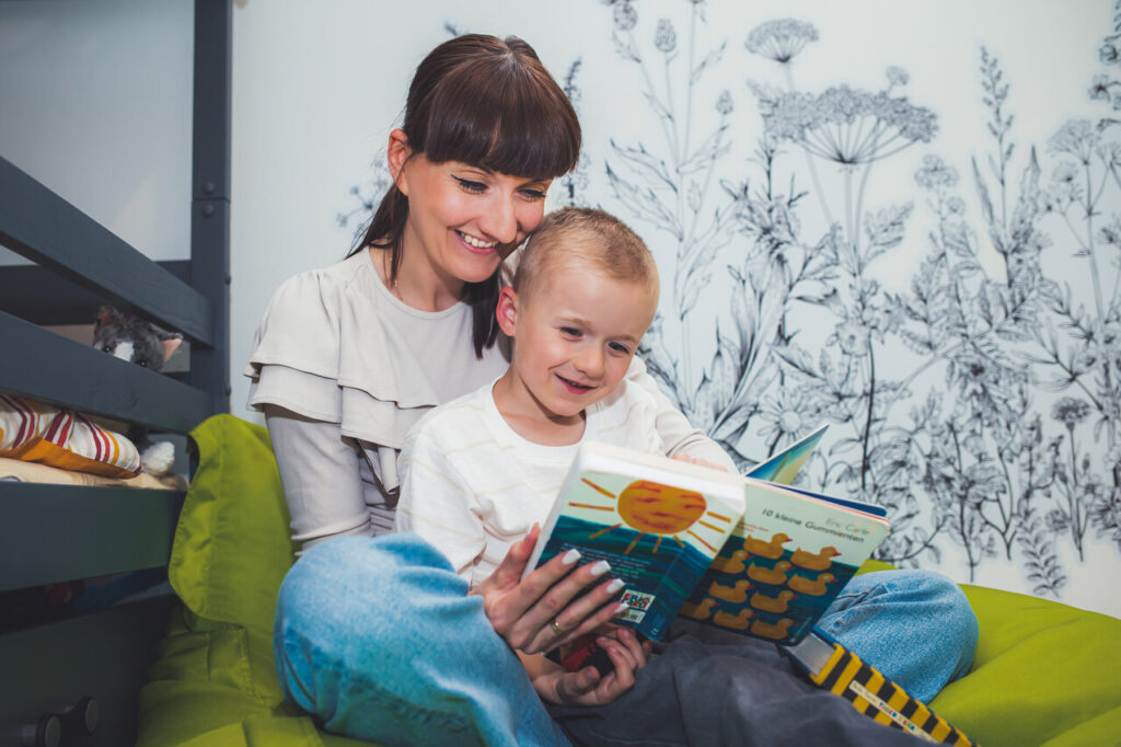 Moja rodzina w Niemczech bardzo mnie wspiera, a wizyty kuzynów są dla dzieci cenną okazją do aktywnego mówienia po niemiecku. Używamy różnych sposobów promowania języka poprzez zabawę – w tym podcastów, niemieckojęzycznych książek dla dzieci, które często przywozimy z Niemiec lub otrzymujemy od naszej rodziny. Materiały dydaktyczne, takie jak gry planszowe, TipToi i Toniebox są również świetnymi pomocami, które towarzyszą nauce w zajmujący sposób.